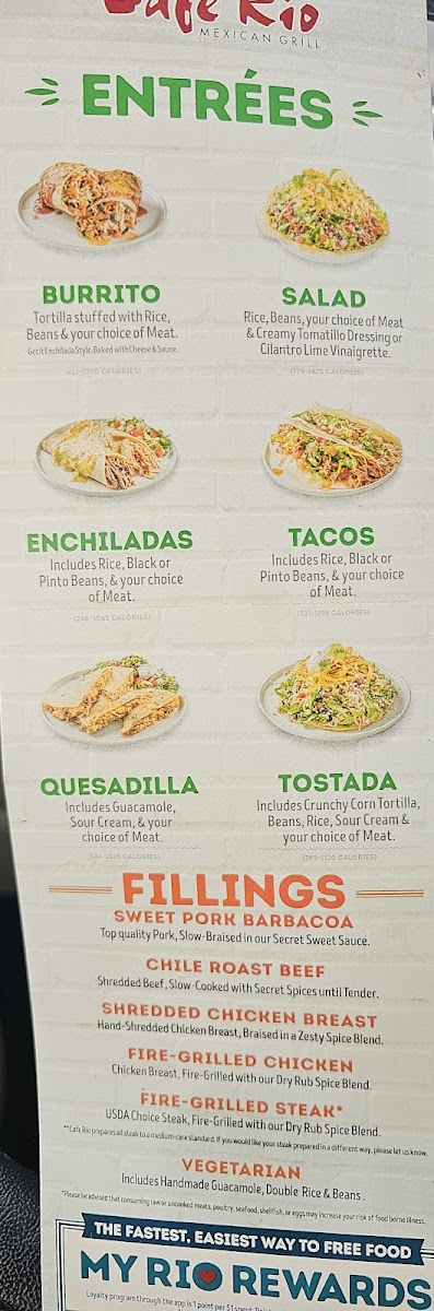 Cafe Rio Fresh Modern Mexican offers a vibrant menu that celebrates authentic Mexican and Tex-Mex flavors with a fresh, modern twist. Located in Las Vegas, this family-friendly restaurant is known for its generous portions and attentive service. Highlights include customizable burritos, crisp shredded chicken tostadas, and protein-rich salads perfect for health-conscious diners. Customers appreciate the quality and freshness of the ingredients, as well as the speedy preparation. While some have noted occasional inconsistencies, such as colder rice or less meat in burritos, the staff’s friendly attitude and willingness to go above and beyond create a welcoming atmosphere. Whether you’re stopping by for fast food or catering a gathering, Cafe Rio provides balanced options that satisfy diverse tastes. Their dedication to fresh, bold flavors and accommodating different dietary preferences makes it a reliable choice for those craving Mexican cuisine with a modern, wholesome edge.